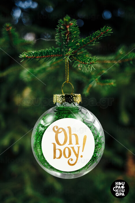 Oh baby gold, Στολίδι Χριστουγεννιάτικη μπάλα δένδρου διάφανη με πράσινο γέμισμα 8cm