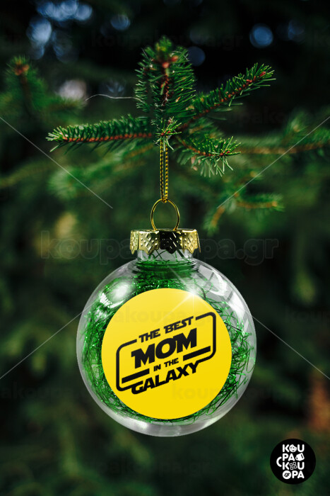 The Best MOM in the Galaxy, Στολίδι Χριστουγεννιάτικη μπάλα δένδρου διάφανη με πράσινο γέμισμα 8cm