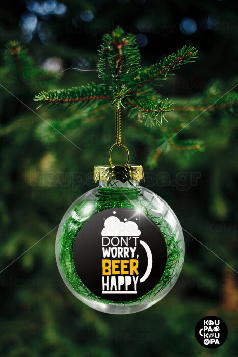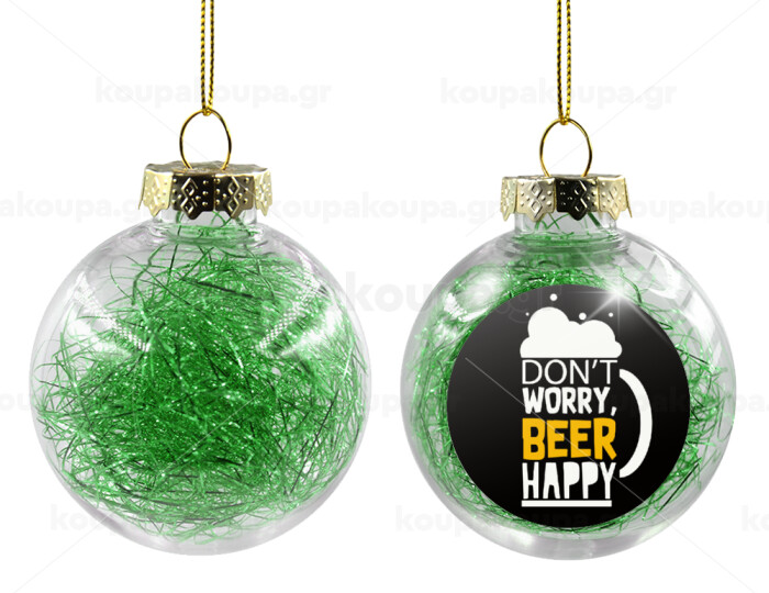 Don't worry BEER Happy, Στολίδι Χριστουγεννιάτικη μπάλα δένδρου διάφανη με πράσινο γέμισμα 8cm