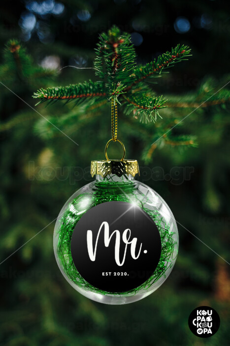 Mr & Mrs (Mr), Στολίδι Χριστουγεννιάτικη μπάλα δένδρου διάφανη με πράσινο γέμισμα 8cm