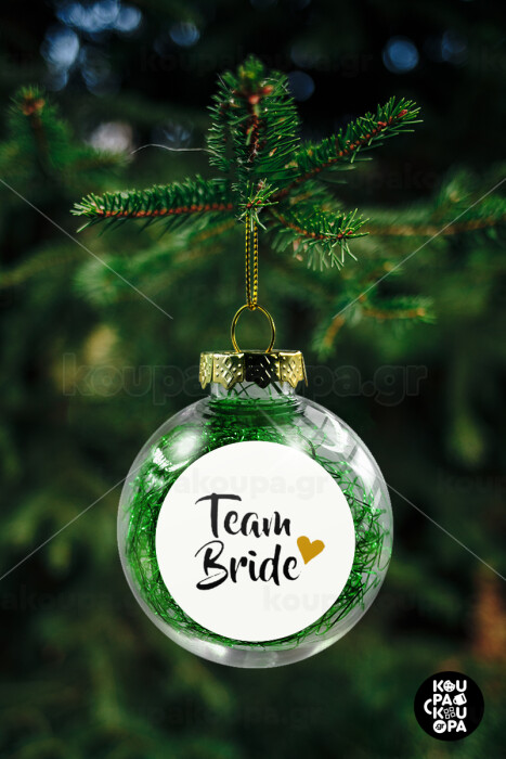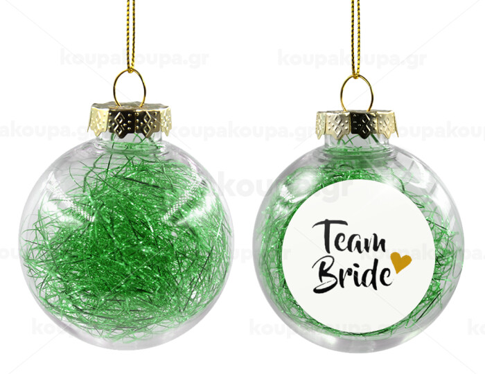 Team Bride, Στολίδι Χριστουγεννιάτικη μπάλα δένδρου διάφανη με πράσινο γέμισμα 8cm