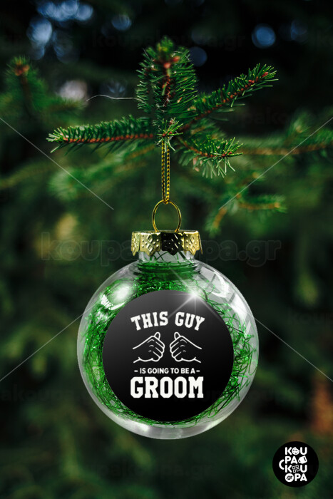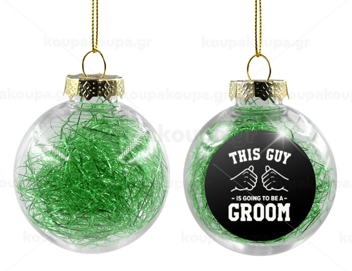 This Guy is going to be a GROOM, Στολίδι Χριστουγεννιάτικη μπάλα δένδρου διάφανη με πράσινο γέμισμα 8cm