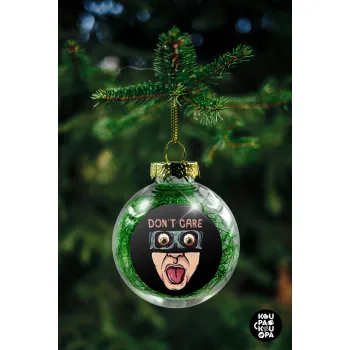 Don't Care, Στολίδι Χριστουγεννιάτικη μπάλα δένδρου διάφανη με πράσινο γέμισμα 8cm