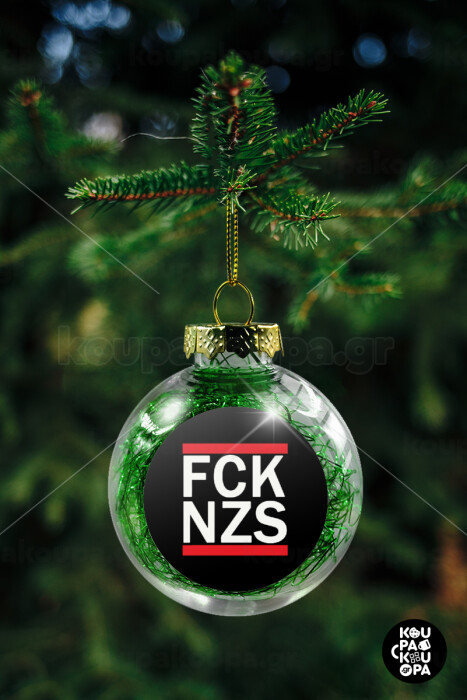 FCK NZS, Στολίδι Χριστουγεννιάτικη μπάλα δένδρου διάφανη με πράσινο γέμισμα 8cm