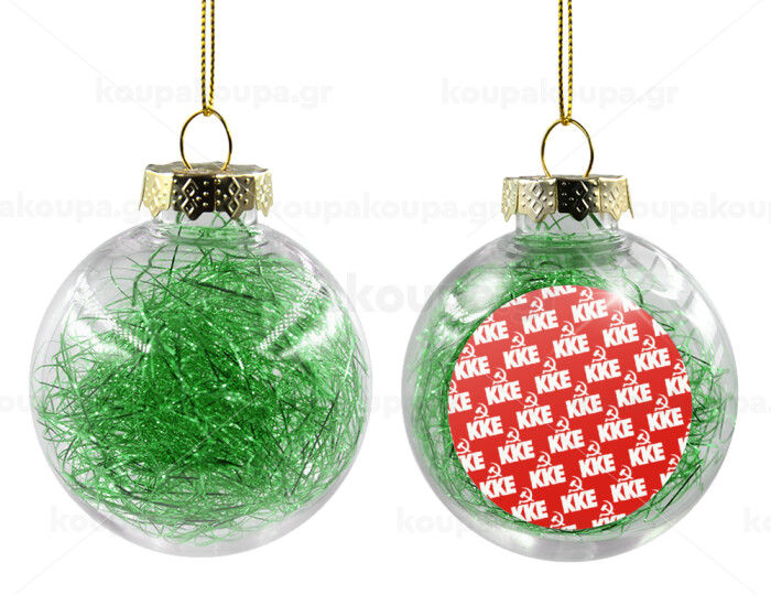K.K.E., Στολίδι Χριστουγεννιάτικη μπάλα δένδρου διάφανη με πράσινο γέμισμα 8cm