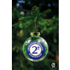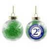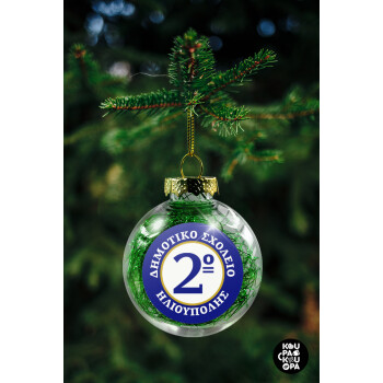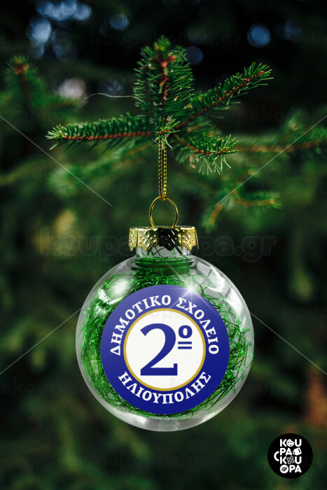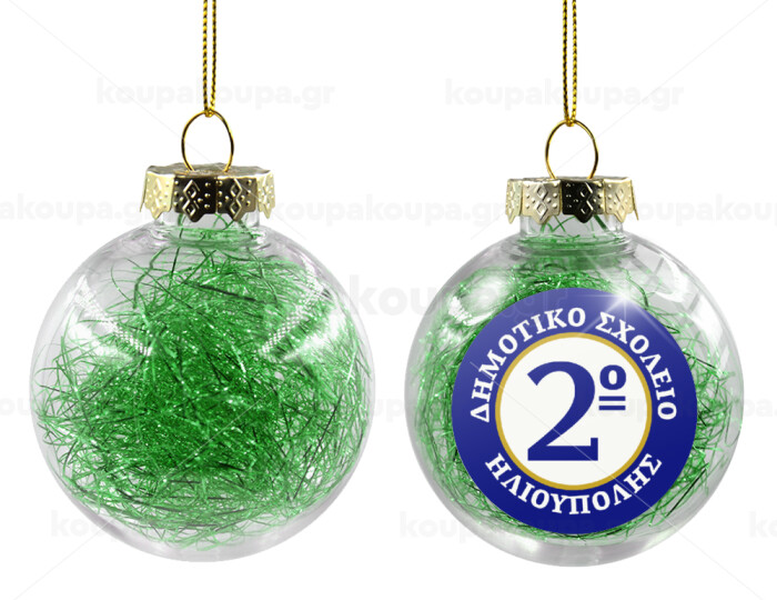 Έμβλημα Σχολικό μπλε/χρυσό, Στολίδι Χριστουγεννιάτικη μπάλα δένδρου διάφανη με πράσινο γέμισμα 8cm