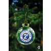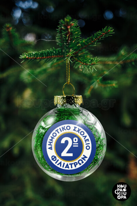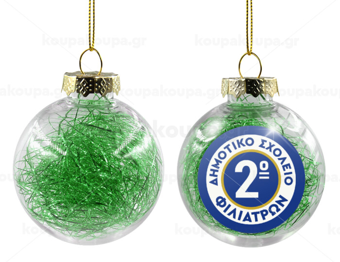 Έμβλημα Σχολικό μπλε κλασική, Στολίδι Χριστουγεννιάτικη μπάλα δένδρου διάφανη με πράσινο γέμισμα 8cm