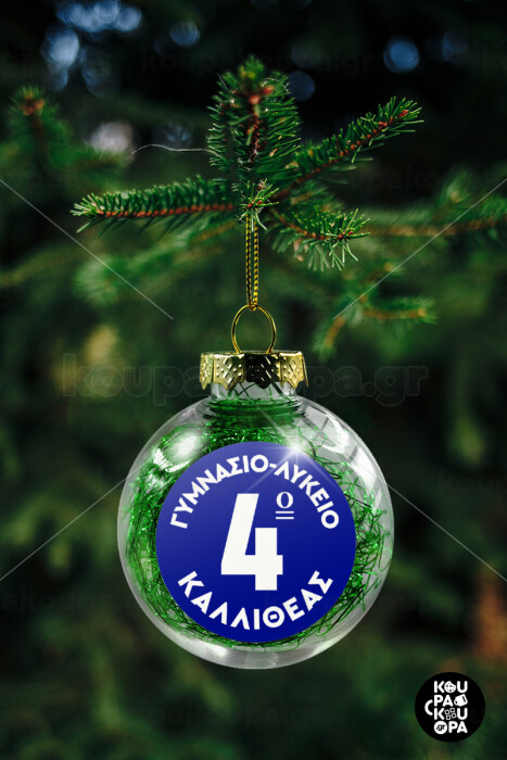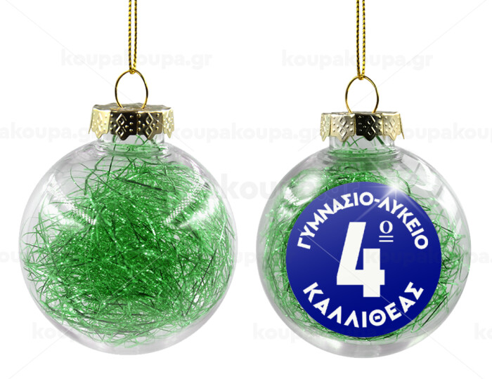 Έμβλημα Σχολικό μπλε κλασικό, Στολίδι Χριστουγεννιάτικη μπάλα δένδρου διάφανη με πράσινο γέμισμα 8cm