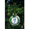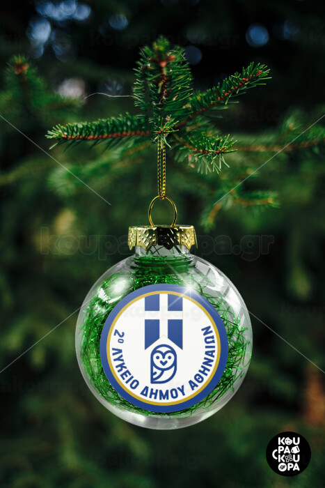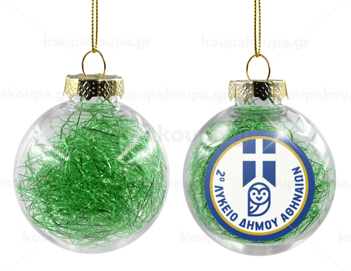 Έμβλημα Σχολικό μπλε owl, Στολίδι Χριστουγεννιάτικη μπάλα δένδρου διάφανη με πράσινο γέμισμα 8cm