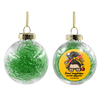Στην καλύτερη συνοδό σχολικού!, Στολίδι Χριστουγεννιάτικη μπάλα δένδρου διάφανη με πράσινο γέμισμα 8cm