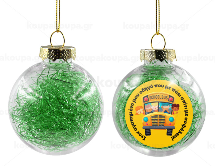 Στον αγαπημένο μου οδηγό που με πάει σπίτι με ασφάλεια!, Στολίδι Χριστουγεννιάτικη μπάλα δένδρου διάφανη με πράσινο γέμισμα 8cm