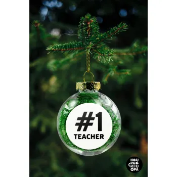 #1 teacher, Στολίδι Χριστουγεννιάτικη μπάλα δένδρου διάφανη με πράσινο γέμισμα 8cm