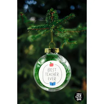 Best teacher ever, Στολίδι Χριστουγεννιάτικη μπάλα δένδρου διάφανη με πράσινο γέμισμα 8cm