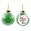 Best teacher in the World!, Στολίδι Χριστουγεννιάτικη μπάλα δένδρου διάφανη με πράσινο γέμισμα 8cm