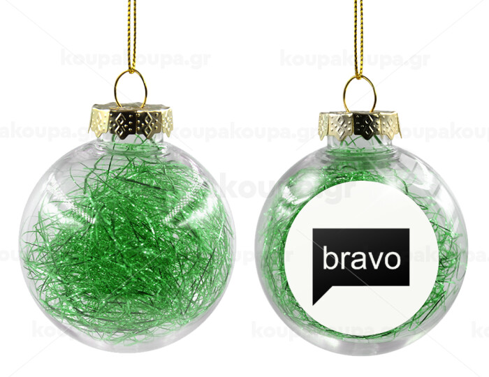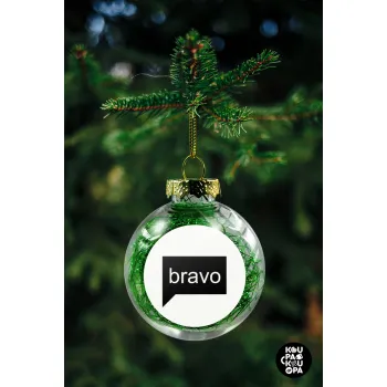 Bravo, Στολίδι Χριστουγεννιάτικη μπάλα δένδρου διάφανη με πράσινο γέμισμα 8cm