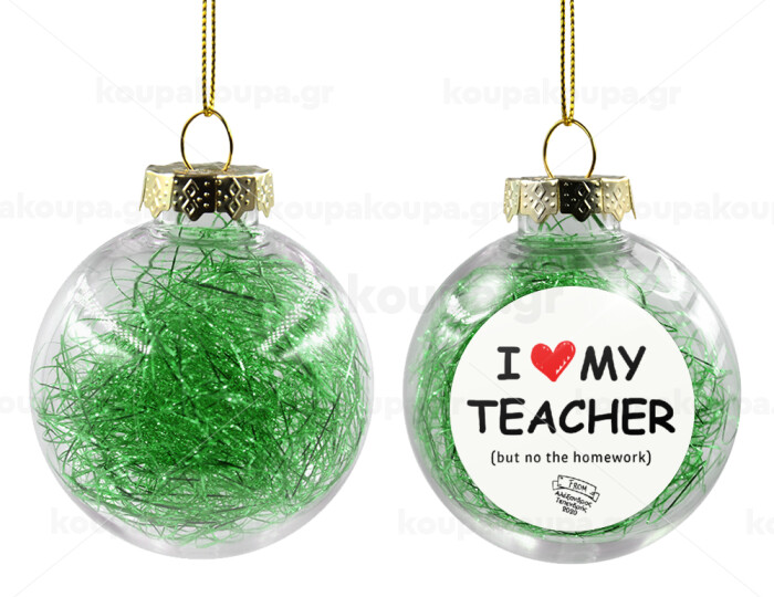 i love my teacher but no the homework, Στολίδι Χριστουγεννιάτικη μπάλα δένδρου διάφανη με πράσινο γέμισμα 8cm