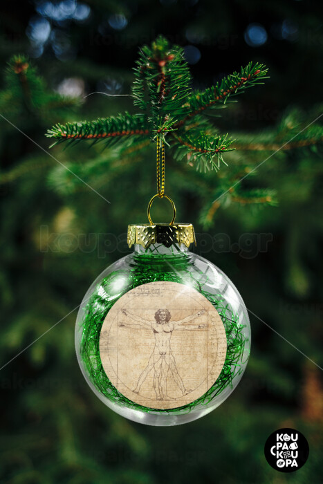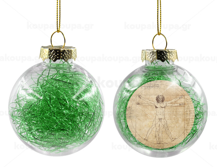 Leonardo da vinci Vitruvian Man, Στολίδι Χριστουγεννιάτικη μπάλα δένδρου διάφανη με πράσινο γέμισμα 8cm