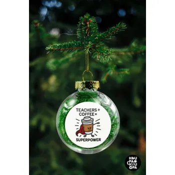 Teacher Coffee Super Power, Στολίδι Χριστουγεννιάτικη μπάλα δένδρου διάφανη με πράσινο γέμισμα 8cm