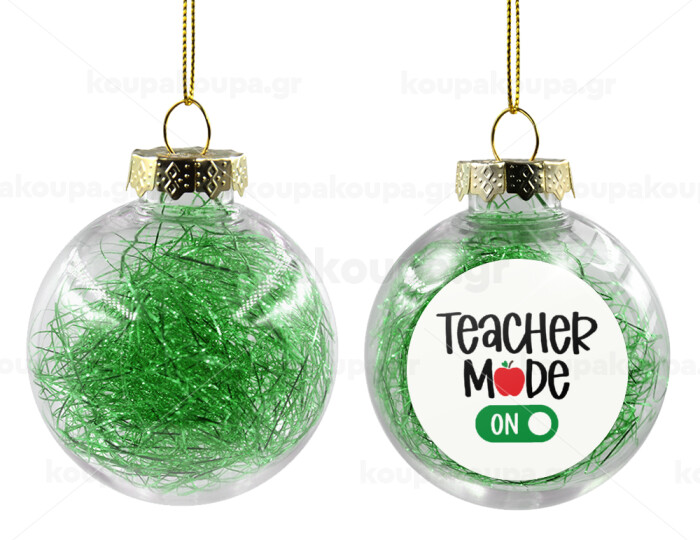 Teacher mode ON, Στολίδι Χριστουγεννιάτικη μπάλα δένδρου διάφανη με πράσινο γέμισμα 8cm