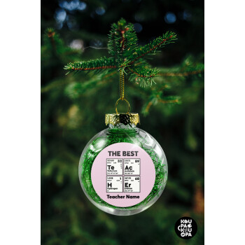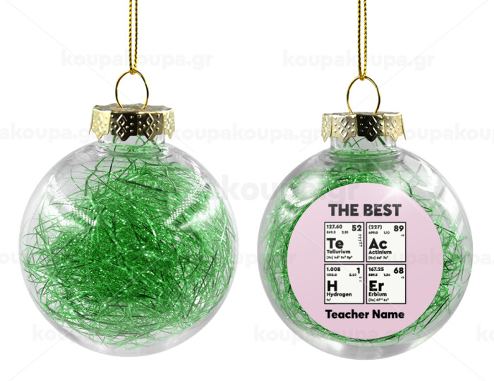 THE BEST Teacher chemical symbols, Στολίδι Χριστουγεννιάτικη μπάλα δένδρου διάφανη με πράσινο γέμισμα 8cm