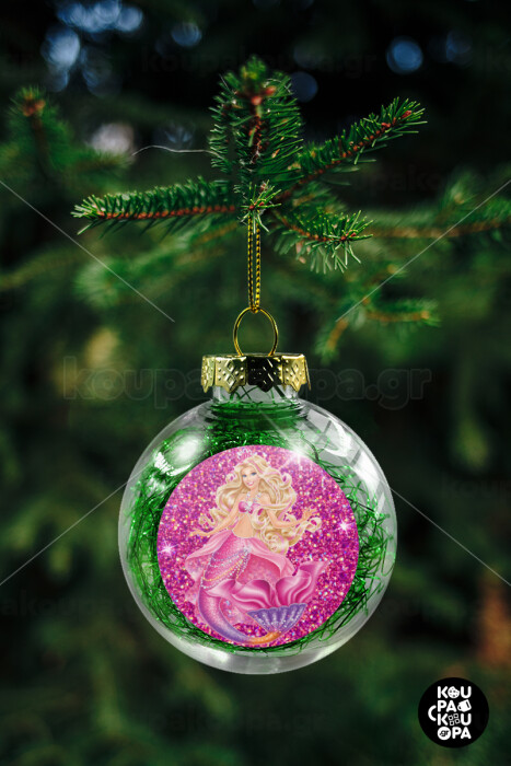 Barbie γοργόνα , Στολίδι Χριστουγεννιάτικη μπάλα δένδρου διάφανη με πράσινο γέμισμα 8cm