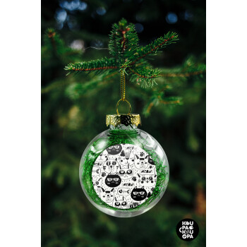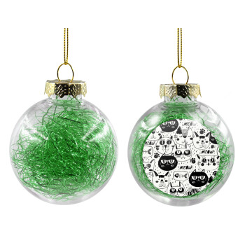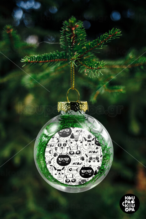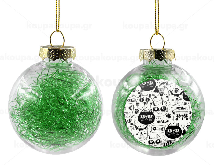 Γάτες, Στολίδι Χριστουγεννιάτικη μπάλα δένδρου διάφανη με πράσινο γέμισμα 8cm