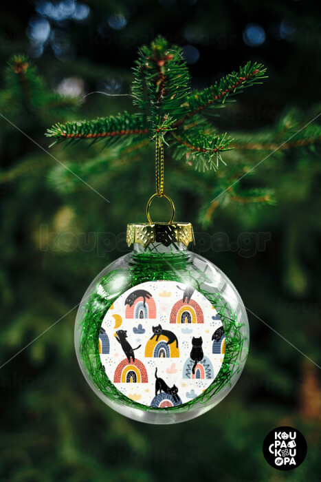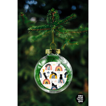 Γατούλες, Στολίδι Χριστουγεννιάτικη μπάλα δένδρου διάφανη με πράσινο γέμισμα 8cm