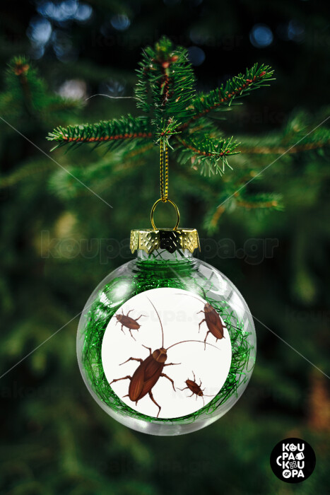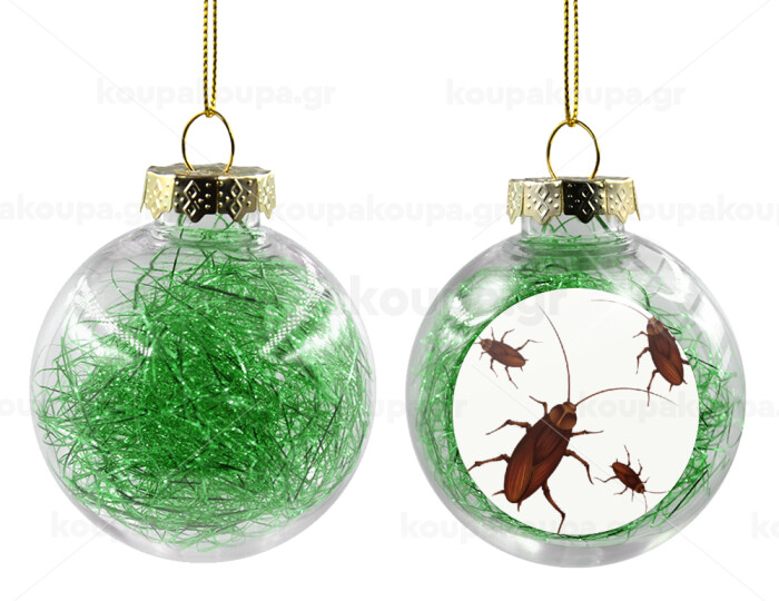 Κατσαρίδα, Στολίδι Χριστουγεννιάτικη μπάλα δένδρου διάφανη με πράσινο γέμισμα 8cm