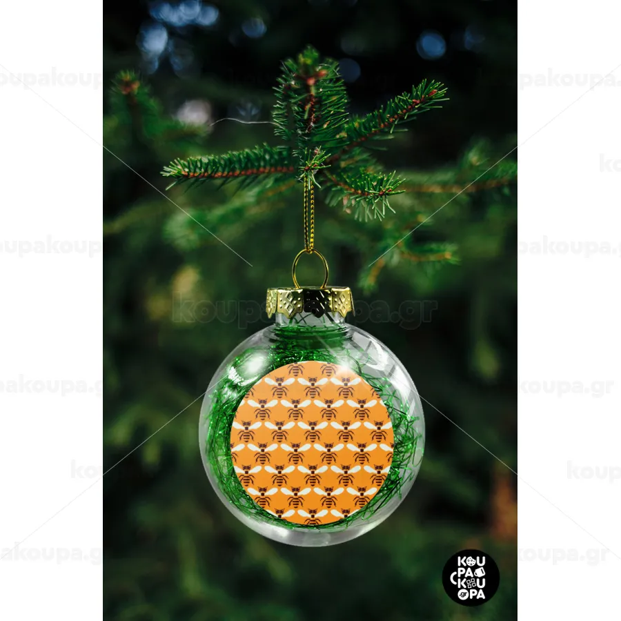 Μελισσούλες, Στολίδι Χριστουγεννιάτικη μπάλα δένδρου διάφανη με πράσινο γέμισμα 8cm