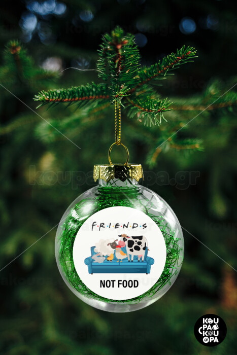 friends, not food, Στολίδι Χριστουγεννιάτικη μπάλα δένδρου διάφανη με πράσινο γέμισμα 8cm