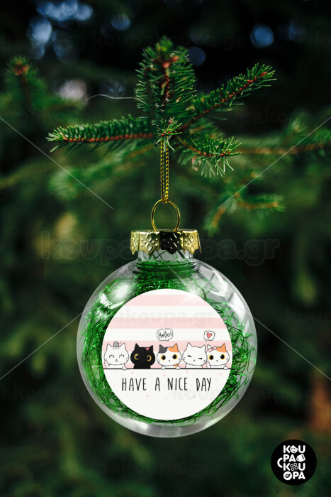 Have a nice day cats, Στολίδι Χριστουγεννιάτικη μπάλα δένδρου διάφανη με πράσινο γέμισμα 8cm