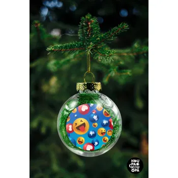 3D Emoji Collection, Στολίδι Χριστουγεννιάτικη μπάλα δένδρου διάφανη με πράσινο γέμισμα 8cm