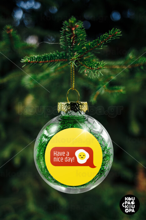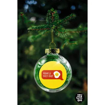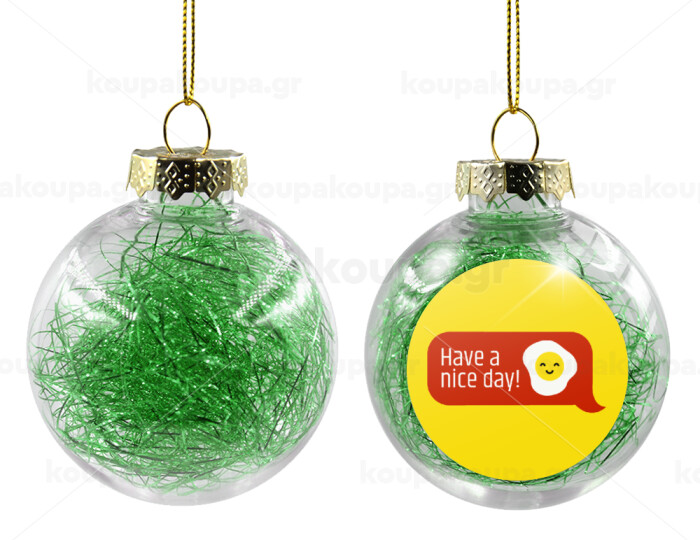 Have a nice day Emoji, Στολίδι Χριστουγεννιάτικη μπάλα δένδρου διάφανη με πράσινο γέμισμα 8cm