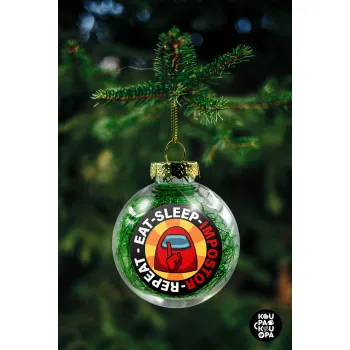 Among US Eat Sleep Repeat Impostor, Στολίδι Χριστουγεννιάτικη μπάλα δένδρου διάφανη με πράσινο γέμισμα 8cm