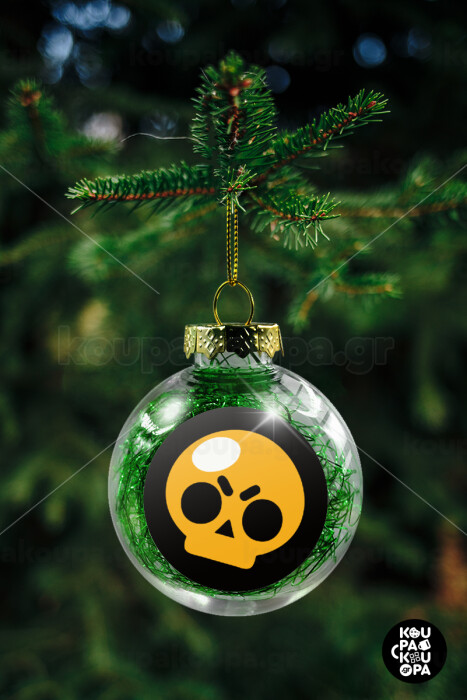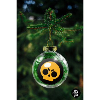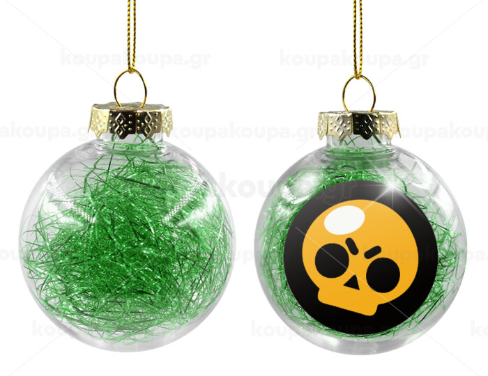 Brawl Stars Skull, Στολίδι Χριστουγεννιάτικη μπάλα δένδρου διάφανη με πράσινο γέμισμα 8cm