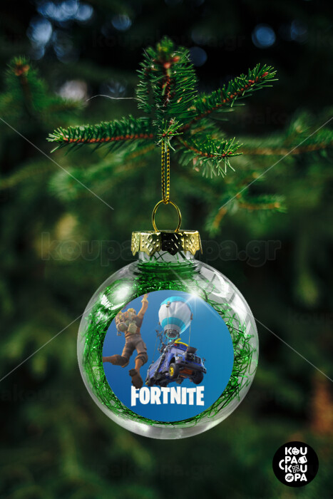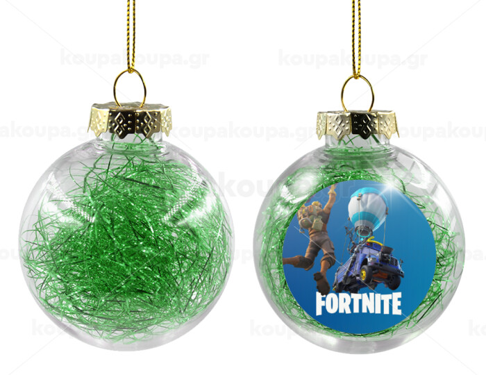 Fortnite Bus, Στολίδι Χριστουγεννιάτικη μπάλα δένδρου διάφανη με πράσινο γέμισμα 8cm