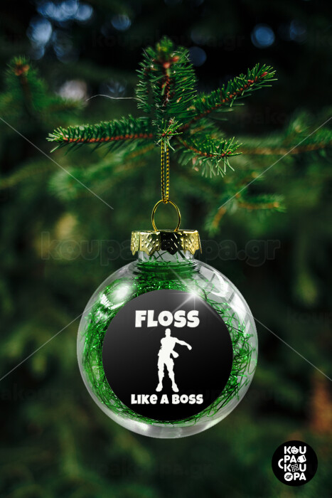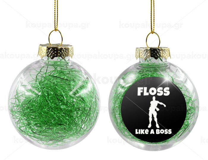 Fortnite Floss Like a Boss, Στολίδι Χριστουγεννιάτικη μπάλα δένδρου διάφανη με πράσινο γέμισμα 8cm