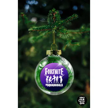Fortnite #squadgoals, Στολίδι Χριστουγεννιάτικη μπάλα δένδρου διάφανη με πράσινο γέμισμα 8cm