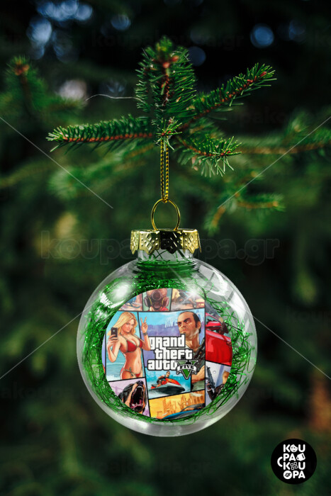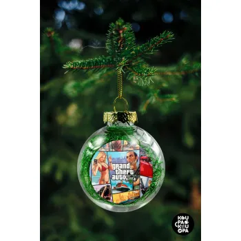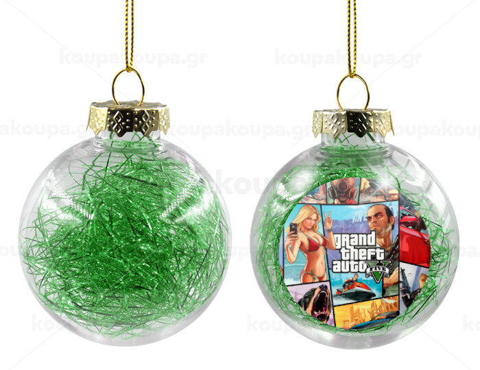 GTA V, Στολίδι Χριστουγεννιάτικη μπάλα δένδρου διάφανη με πράσινο γέμισμα 8cm