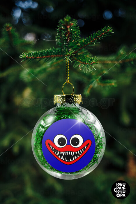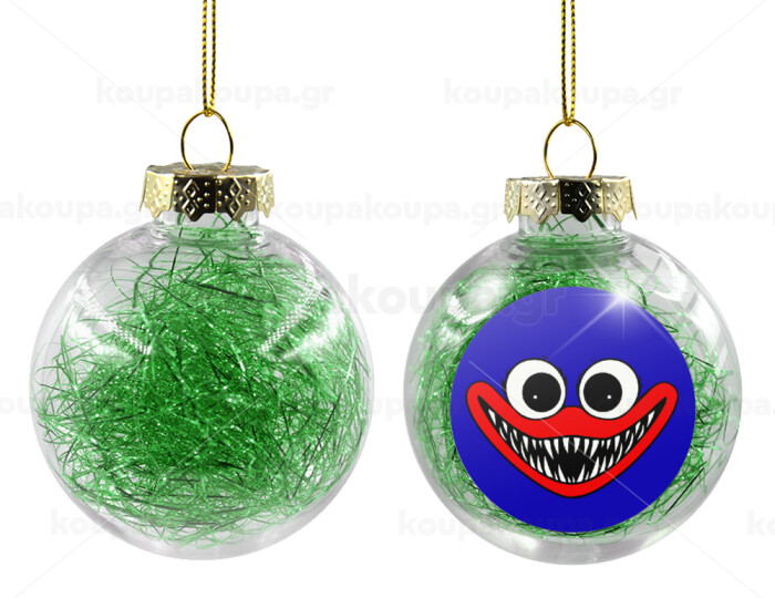 Huggy wuggy, Στολίδι Χριστουγεννιάτικη μπάλα δένδρου διάφανη με πράσινο γέμισμα 8cm