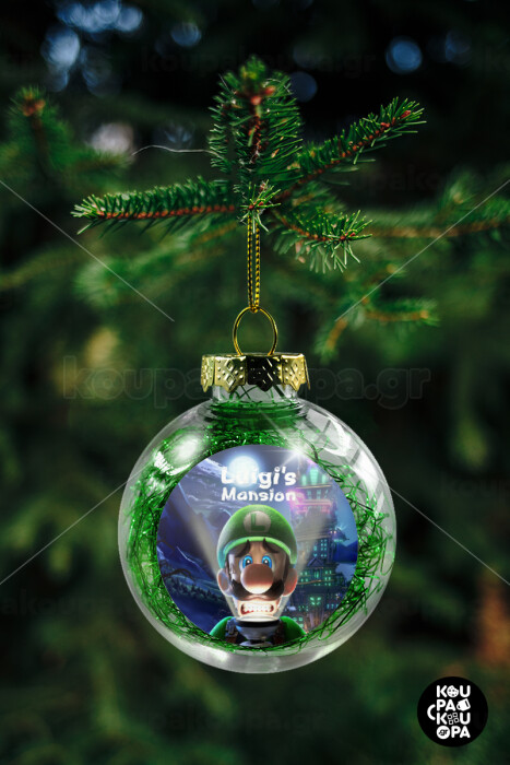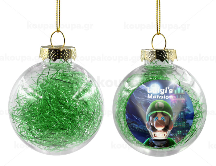 Luigi's Mansion, Στολίδι Χριστουγεννιάτικη μπάλα δένδρου διάφανη με πράσινο γέμισμα 8cm