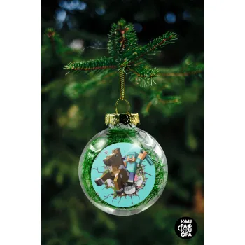 Minecraft brick, Στολίδι Χριστουγεννιάτικη μπάλα δένδρου διάφανη με πράσινο γέμισμα 8cm
