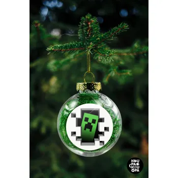 Minecraft creeper, Στολίδι Χριστουγεννιάτικη μπάλα δένδρου διάφανη με πράσινο γέμισμα 8cm