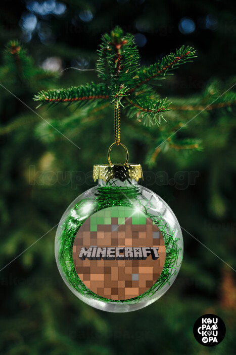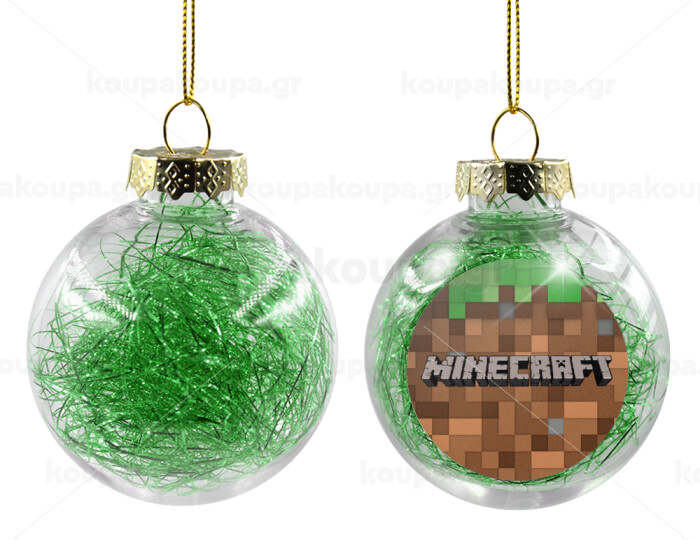 Minecraft dirt, Στολίδι Χριστουγεννιάτικη μπάλα δένδρου διάφανη με πράσινο γέμισμα 8cm
