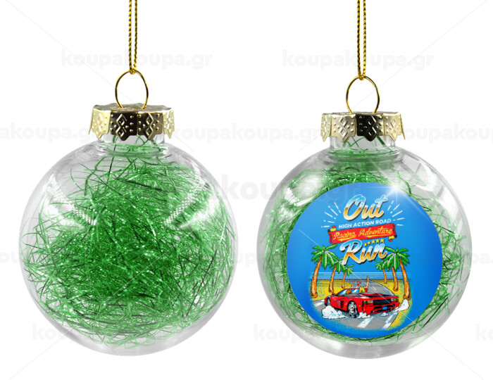 outrun game, Στολίδι Χριστουγεννιάτικη μπάλα δένδρου διάφανη με πράσινο γέμισμα 8cm