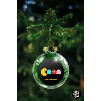 Pacman waka waka waka, Στολίδι Χριστουγεννιάτικη μπάλα δένδρου διάφανη με πράσινο γέμισμα 8cm