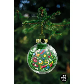 Pop art colorful seamless, Στολίδι Χριστουγεννιάτικη μπάλα δένδρου διάφανη με πράσινο γέμισμα 8cm