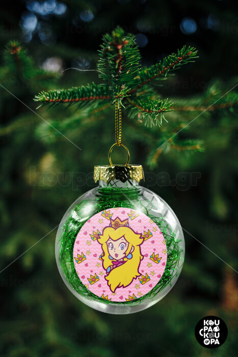 Princess Peach, Στολίδι Χριστουγεννιάτικη μπάλα δένδρου διάφανη με πράσινο γέμισμα 8cm