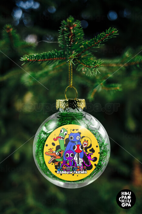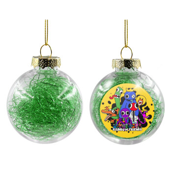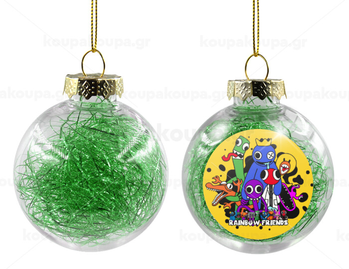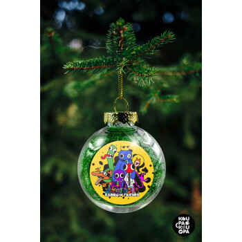 Rainbow friends, Στολίδι Χριστουγεννιάτικη μπάλα δένδρου διάφανη με πράσινο γέμισμα 8cm
