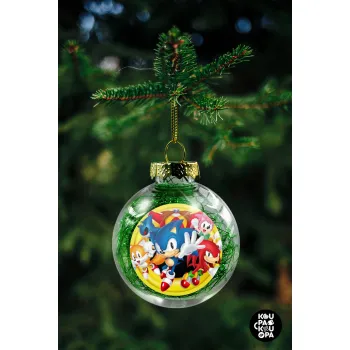 Sonic and friends, Στολίδι Χριστουγεννιάτικη μπάλα δένδρου διάφανη με πράσινο γέμισμα 8cm